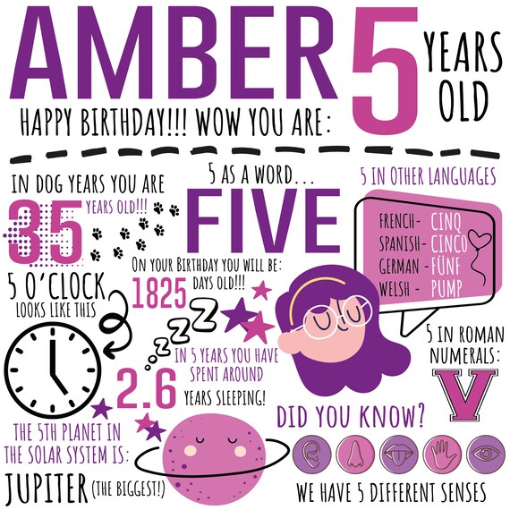Personalised 5th Birthday Card for Girl 5th Birthday Card for