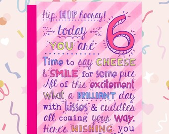 6 Year Old Birthday Card, 6th Birthday Card in Pink or Blue Etsy