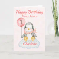 Great Niece Penguin Happy 1st Birthday Card | Zazzle